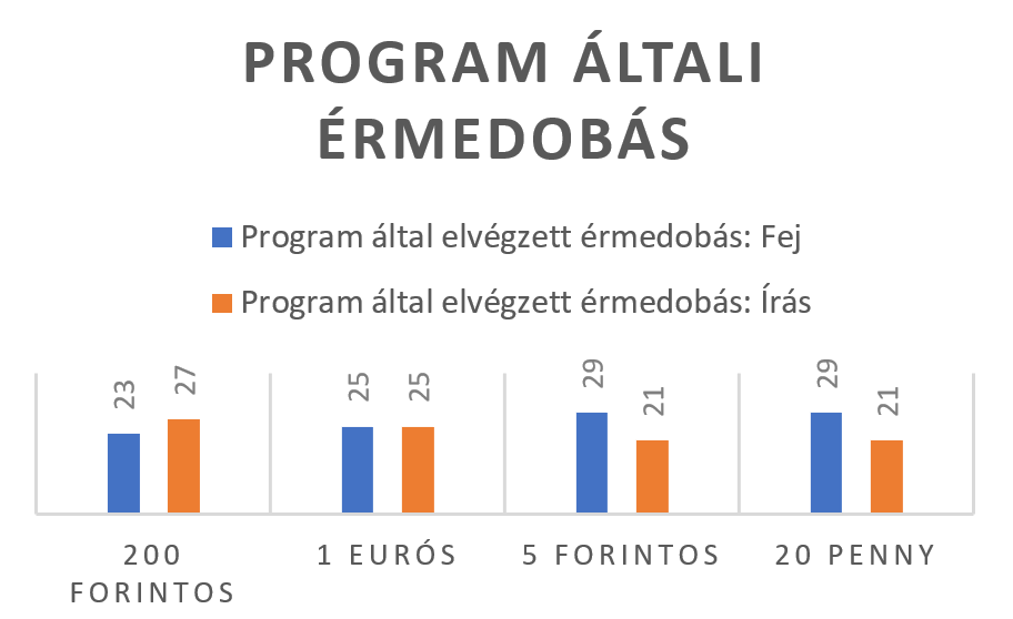 A feladatunk az volt, hogy összevessük a manuális pénzfeldobás és a program általi "dobás" eredményeit.