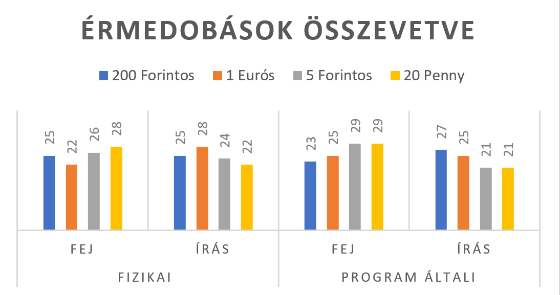 Az 5 forintossal egyel több fejt sikerült dobni.